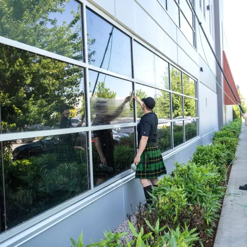 Here at Men In Kilts York Region, we recognize the crucial role that maintaining pristine appearances plays in the success of your commercial venture. Our steadfast commitment to excellence shines through in our dependable commercial window cleaning services, ensuring that your windows radiate brilliance, even in the most challenging-to-reach areas.